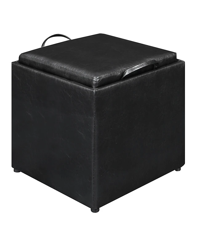 Convenience Concepts 17.5" Faux Leather Park Avenue Ottoman with Stool and Tray