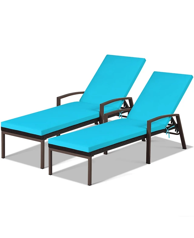 2 Pcs Patio Lounge Chair Chaise Adjustable Reclining Armrest