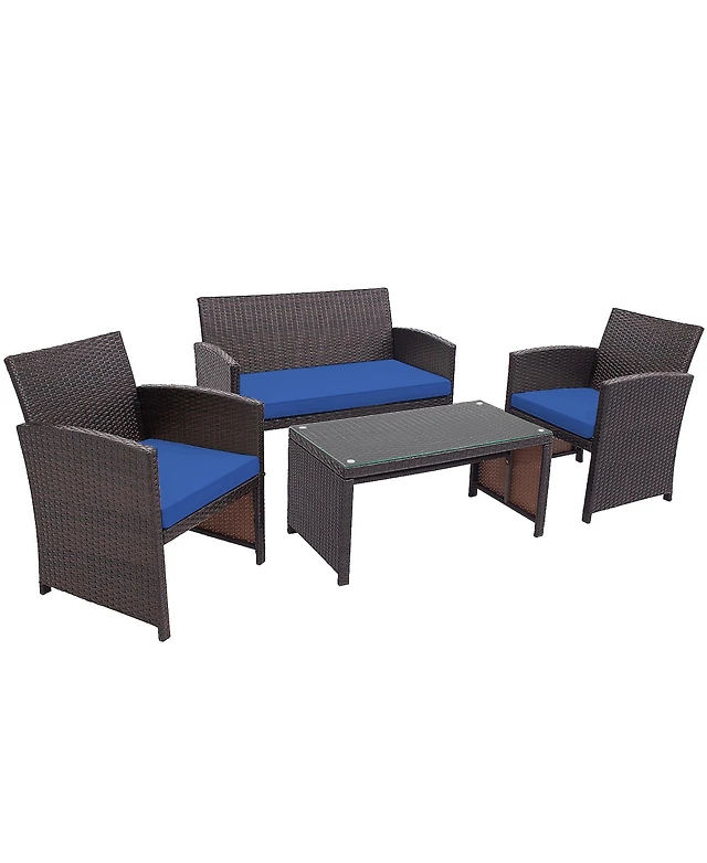 2PCS Patio Rattan Ottoman Cushioned Seat