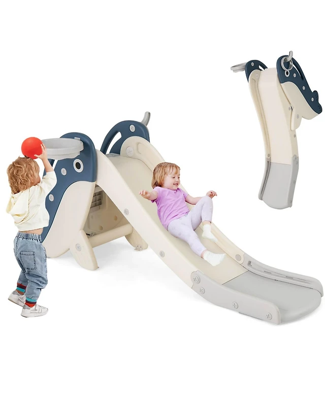 4-in-1 Toddler Slide Playground with Basketball Hoop Ball Ring Toss Climbing