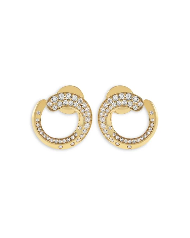 18K Yellow Gold Like Collection Spiral Hoop Earrings with Diamond Pavé, 0.74 tcw