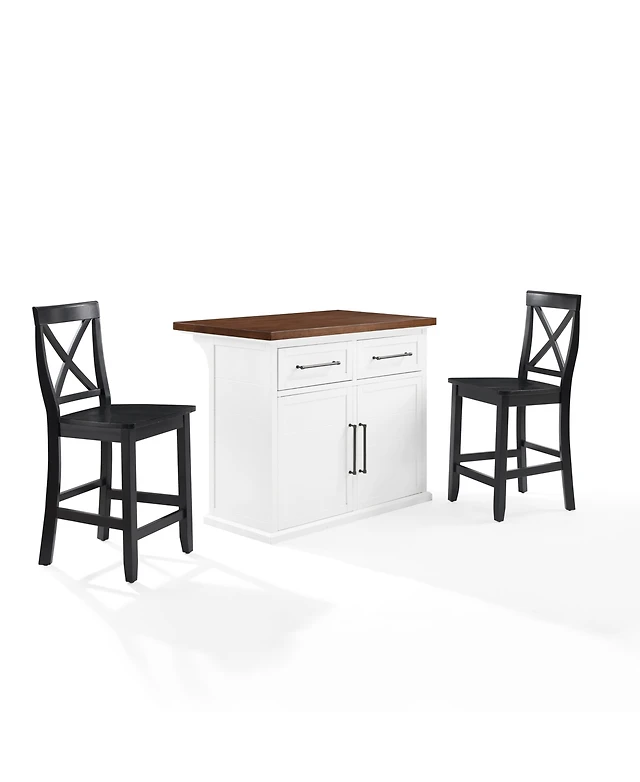 Crosley Furniture Bartlett 42" Wood Top Kitchen Island W/X-Back Stools