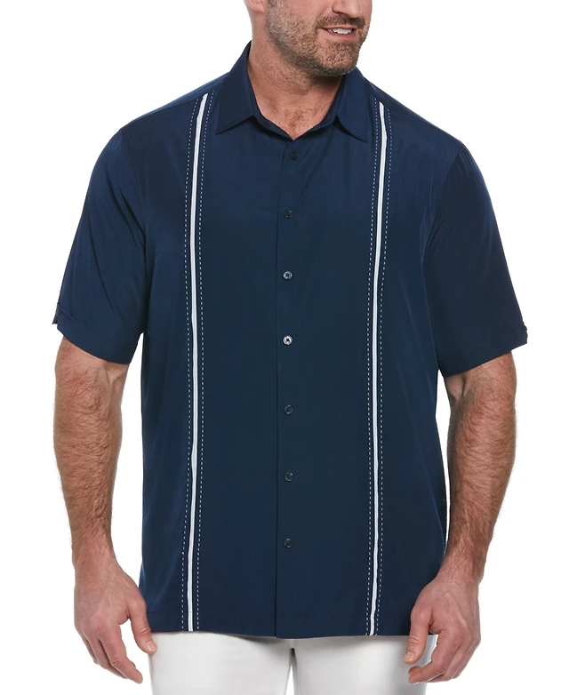 Cubavera Men's Pick Stitch Panel Short Sleeve Button-Down Shirt
