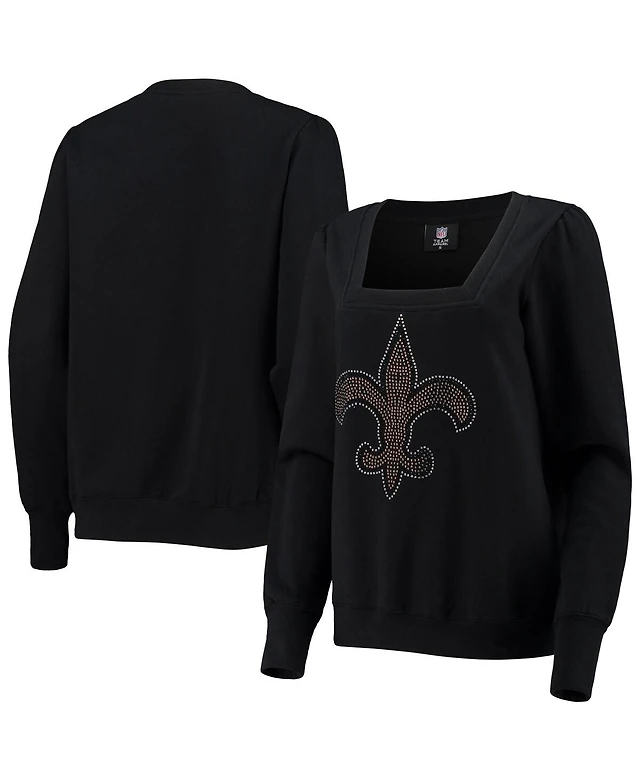 Women's Cuce Black New Orleans Saints Winners Square Neck Pullover Sweatshirt