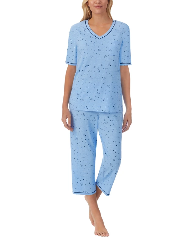 Cuddl Duds Women's Cropped Short-Sleeve Pajama Top and Pants, 2-Piece Set