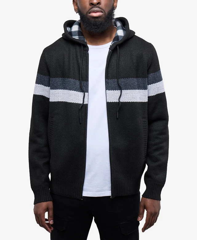 Cultura Men's Full Zip Hooded Sweater With Stripes And Flannel Lining
