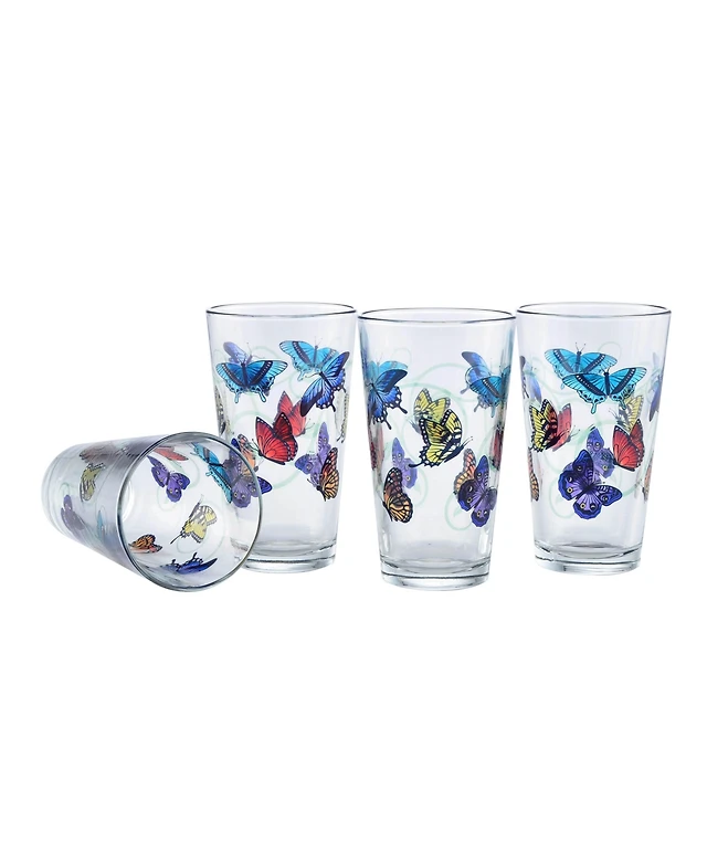 Culver Butterflies Pint Glass 16-Ounce Set of 4