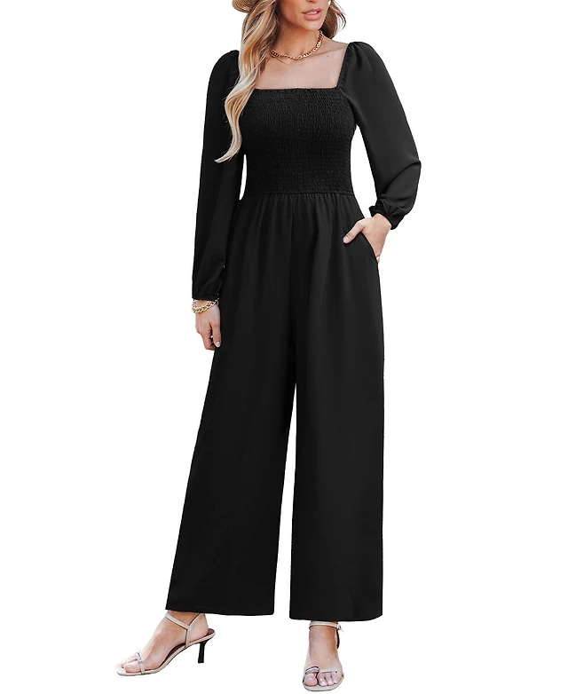 Cupshe Women's Chic Smocked Square Neck Wide Leg Jumpsuit