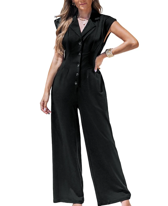 Cupshe Women's Button-Front Wide-Leg Jumpsuit