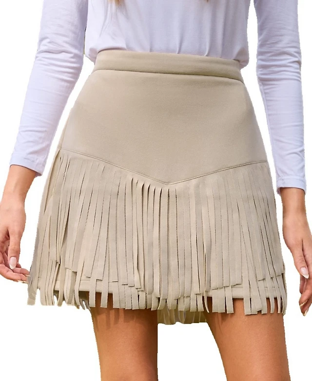Cupshe Women's Faux Suede Fringe Hem Mini Skirt