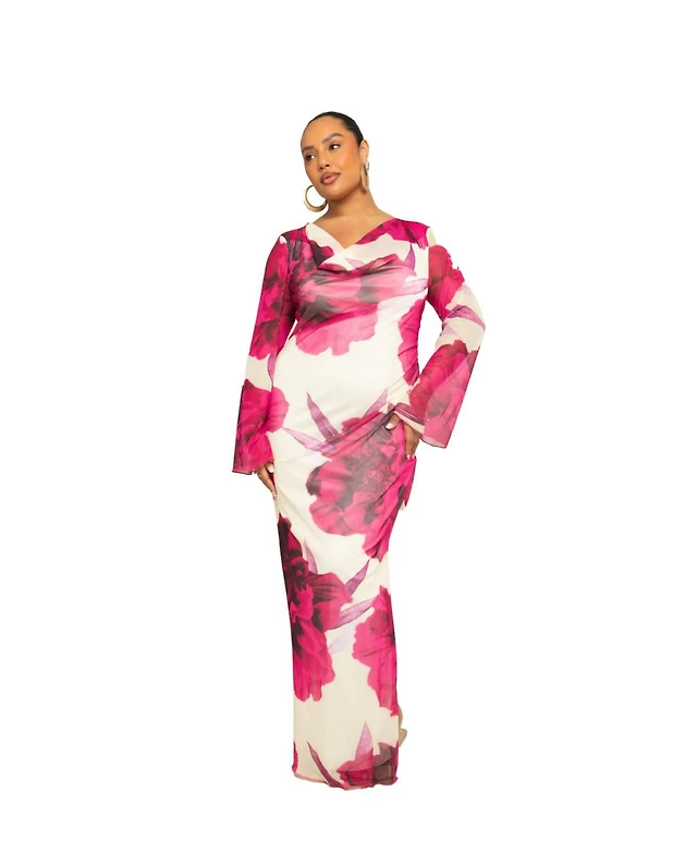 Fashion-szn Curve Women's Long Sleeve Floral Maxi Dress