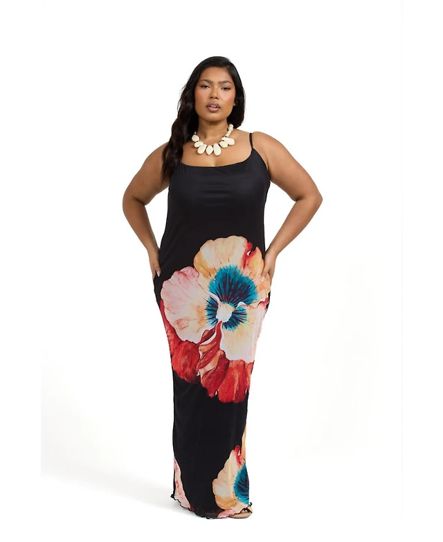 Fashion-szn Curve Women's Floral Print Mesh Maxi Dress