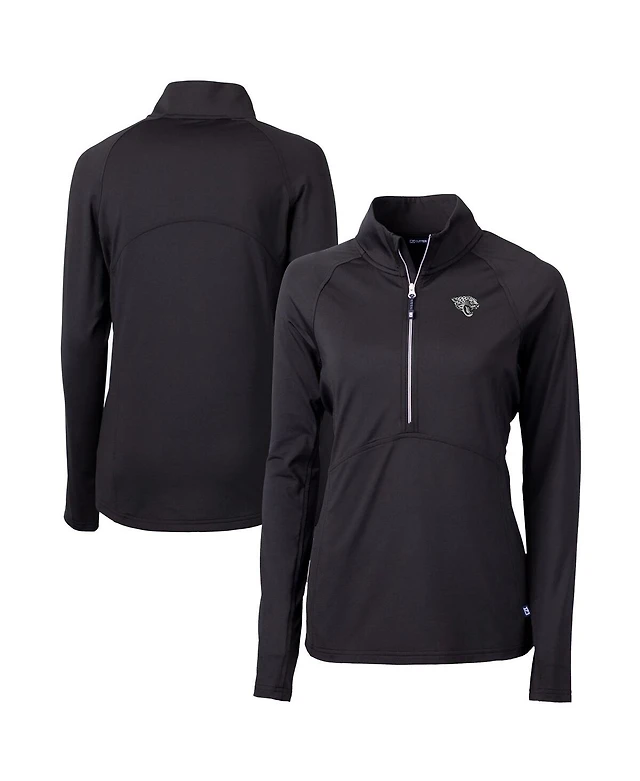 Women's Cutter & Buck Black Buffalo Bills Virtue Eco Pique Half-Zip 3/4 Sleeve Pullover Hoodie