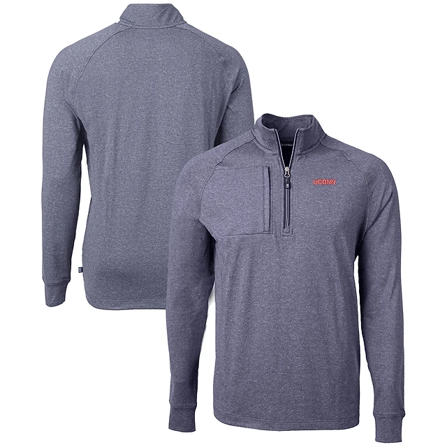 Men's Cutter & Buck Heather Navy UConn Huskies Big & Tall Adapt Eco Knit Quarter-Zip Pullover Top