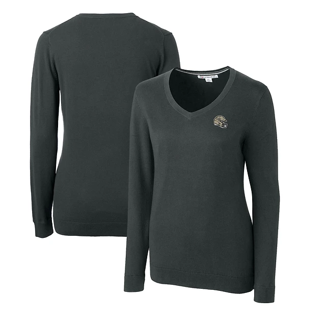 Women's Cutter & Buck Charcoal New Orleans Saints Helmet Logo Lakemont Tri-Blend V-Neck Pullover Sweater