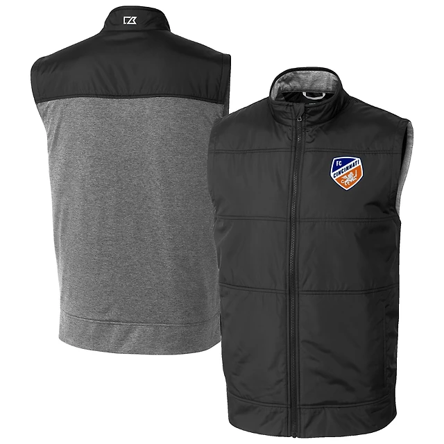 Men's Cutter & Buck Black FC Cincinnati Stealth Hybrid Quilted Windbreaker Full-Zip Vest