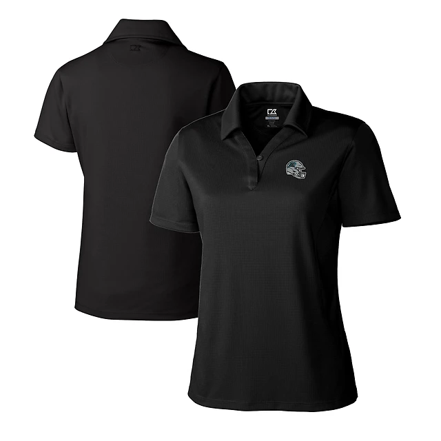 Women's Cutter & Buck Black Detroit Lions Helmet Logo DryTec Forge Stretch Polo