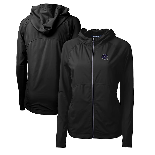Women's Cutter & Buck Black Minnesota Vikings Helmet Logo Adapt Eco Knit Hybrid Recycled Full-Zip Hoodie