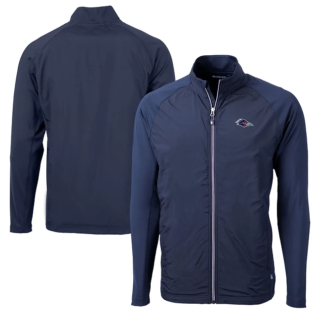 Men's Cutter & Buck Navy UTSA Roadrunners Adapt Eco Knit Hybrid Recycled Full-Zip Jacket