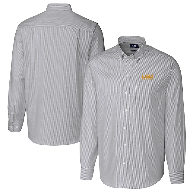 Men's Cutter & Buck Gray LSU Tigers Alumni Logo DryTec Virtue Eco Pique Micro Stripe Recycled Quarter-Zip Pullover Top