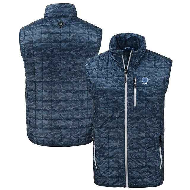 Men's Cutter & Buck Navy North Carolina Tar Heels Alumni Logo Rainier PrimaLoft Eco Insulated Full-Zip Puffer Vest