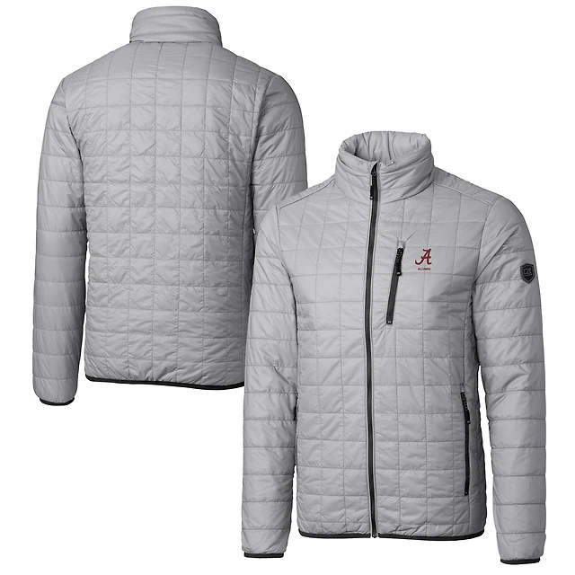 Men's Cutter & Buck Gray Alabama Crimson Tide Alumni Logo Rainier PrimaLoft Eco Insulated Full-Zip Puffer Vest