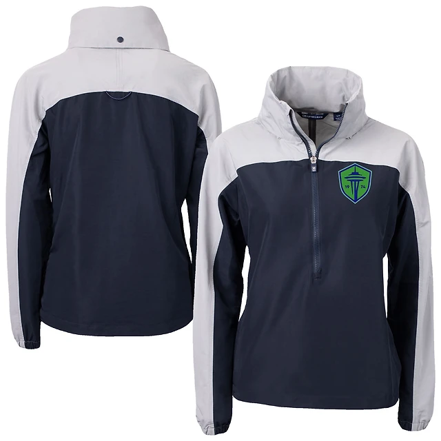 Women's Cutter & Buck Navy Seattle Sounders FC Charter Eco Recycled Full-Zip Anorak Jacket