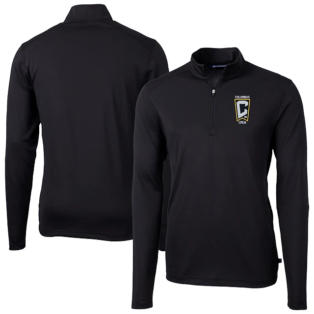 Men's Cutter & Buck Black Columbus Crew Big & Tall Virtue Eco Pique Recycled Quarter-Zip Pullover Top