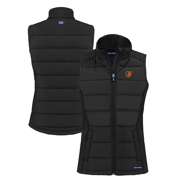 Women's Cutter & Buck Black Baltimore Orioles Evoke Hybrid Eco Softshell Recycled Full-Zip Vest