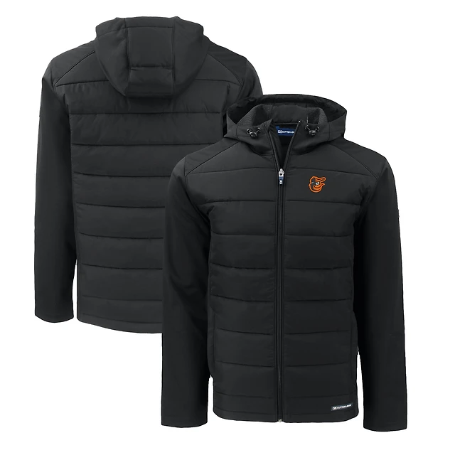 Men's Cutter & Buck Black Baltimore Orioles Big & Tall Evoke Hybrid Eco Softshell Recycled Full-Zip Hoodie