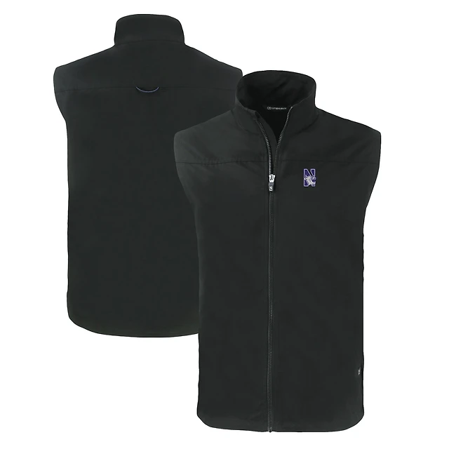 Men's Cutter & Buck Black Northwestern Wildcats Big & Tall Charter Eco Full-Zip Vest