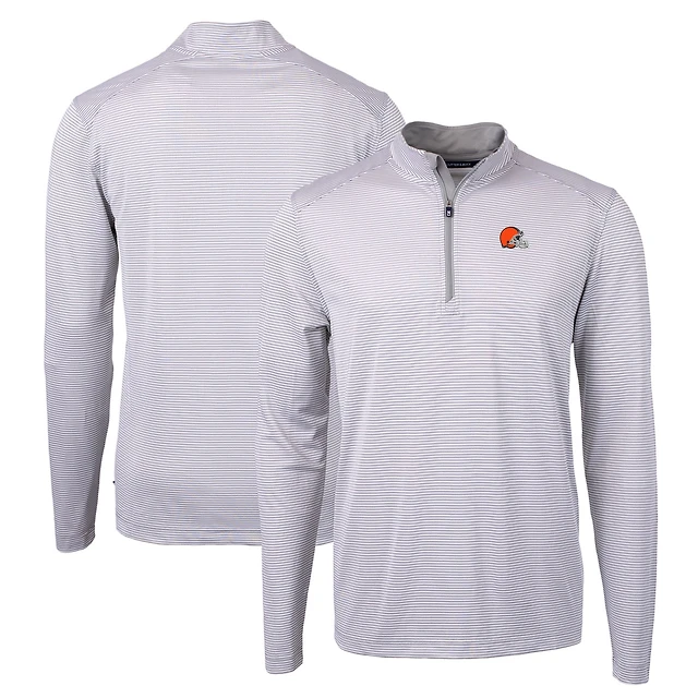 Men's Cutter & Buck Gray/White Cleveland Browns Virtue Eco Pique Micro Stripe Recycled Quarter-Zip Pullover Top