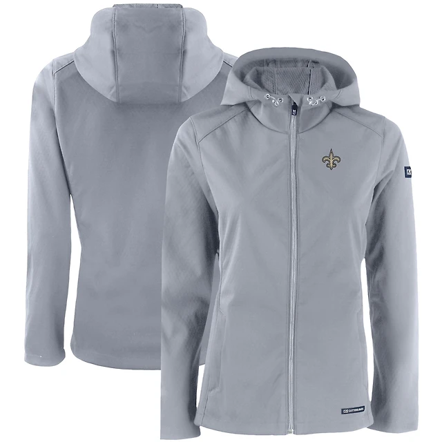 Women's Cutter & Buck Gray New Orleans Saints Evoke Eco Softshell Recycled Full-Zip Hooded Jacket
