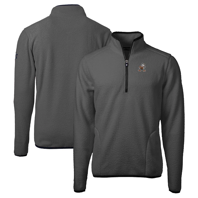 Men's Cutter & Buck Gray/Black Cleveland Browns Throwback Cascade Eco Sherpa Fleece Quarter-Zip Pullover Jacket