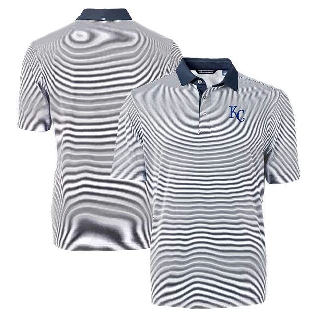Men's Cutter & Buck Navy/White Kansas City Royals Virtue Eco Pique Micro Stripe Recycled Big & Tall Polo
