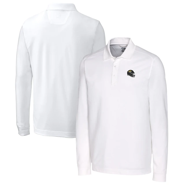 Men's Cutter & Buck White Miami Dolphins Helmet DryTec Genre Textured Solid Polo