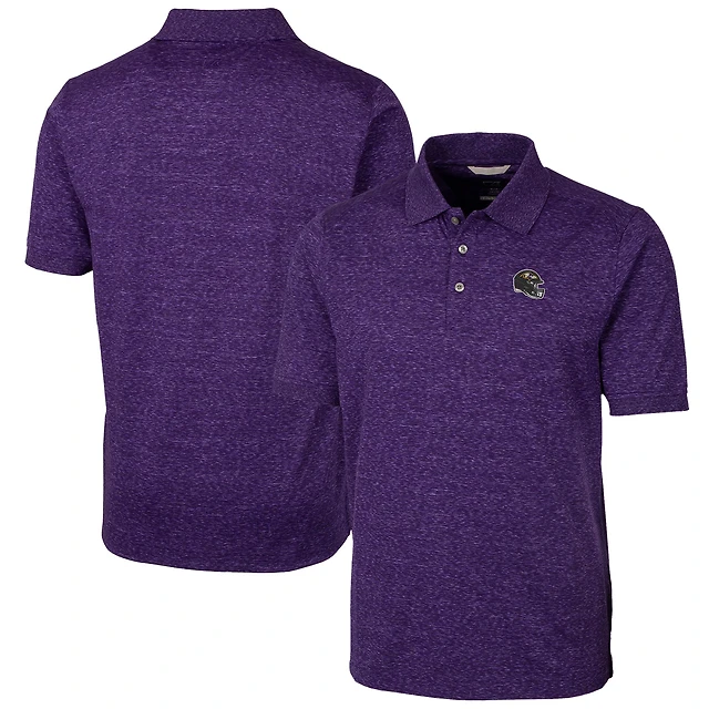 Men's Cutter & Buck Gray Baltimore Ravens Helmet Advantage Tri-Blend Pique Long Sleeve Polo