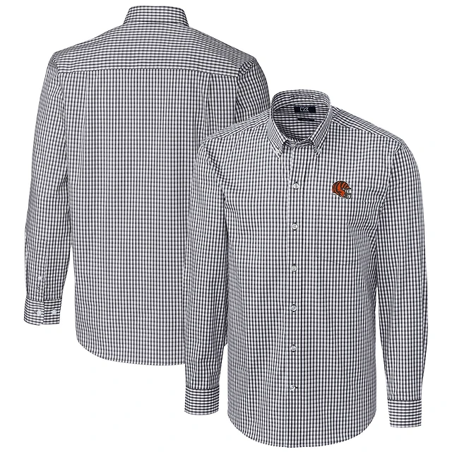 Men's Cutter & Buck Charcoal Cincinnati Bengals Helmet Easy Care Stretch Gingham Long Sleeve Button-Down Shirt