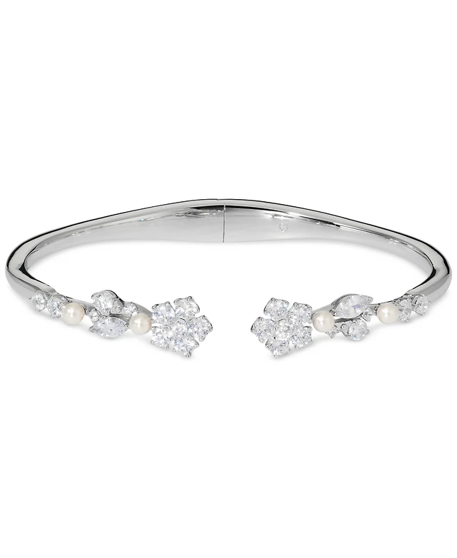 Eliot Danori Cubic Zirconia & Imitation Pearl Flower Cuff Bracelet, Exclusively at Macy's