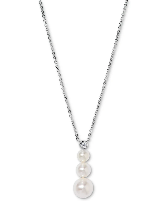 Eliot Danori Silver-Tone Imitation Pearl & Cubic Zirconia Maisie Graduated Pendant Necklace, 16" + 2" extender, Exclusively at Macy's