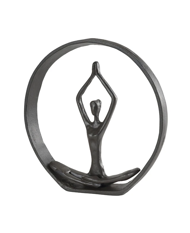 Danya B. Circle Iron Sculpture with Figurine in Yoga Pose