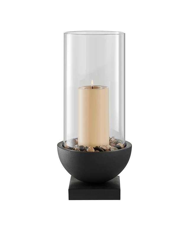 Danya B Modern Black Metal Bold Pedestal and Glass Pillar Hurricane Candle Holder, Large