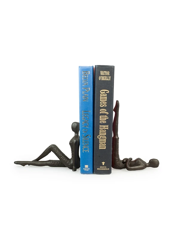 Danya B. Man and Woman Leisurely Reading Bronze Sculptures - Set of 2