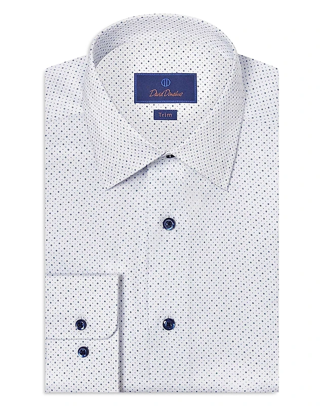 David Donahue Trim Fit Herringbone Dot Print Dress Shirt