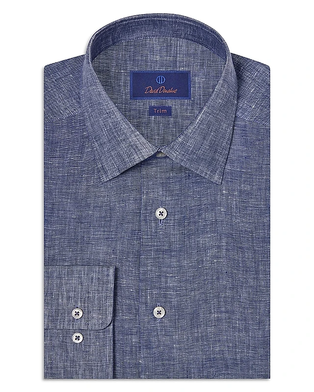 David Donahue Trim Fit Linen Solid Dress Shirt