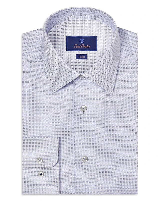 David Donahue Trim Fit Dobby Check Dress Shirt