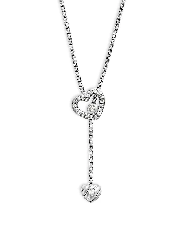 Cable Collectibles Heart Y Necklace in Sterling Silver with Pavé Diamonds, 21"