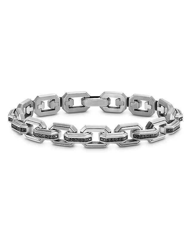 David Yurman Men's Sterling Silver Chevron Black Diamond Pave Woven Rubber Bracelet