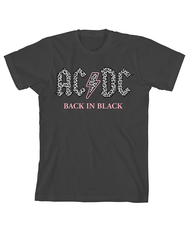Ac/Dc Girls Back Black Gray Leopard Print Logo Crew Neck Short Sleeve