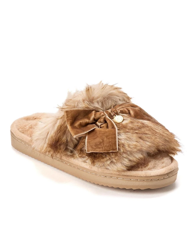 Dearfoams Women's Bianca Pile Slide Slipper with Bow